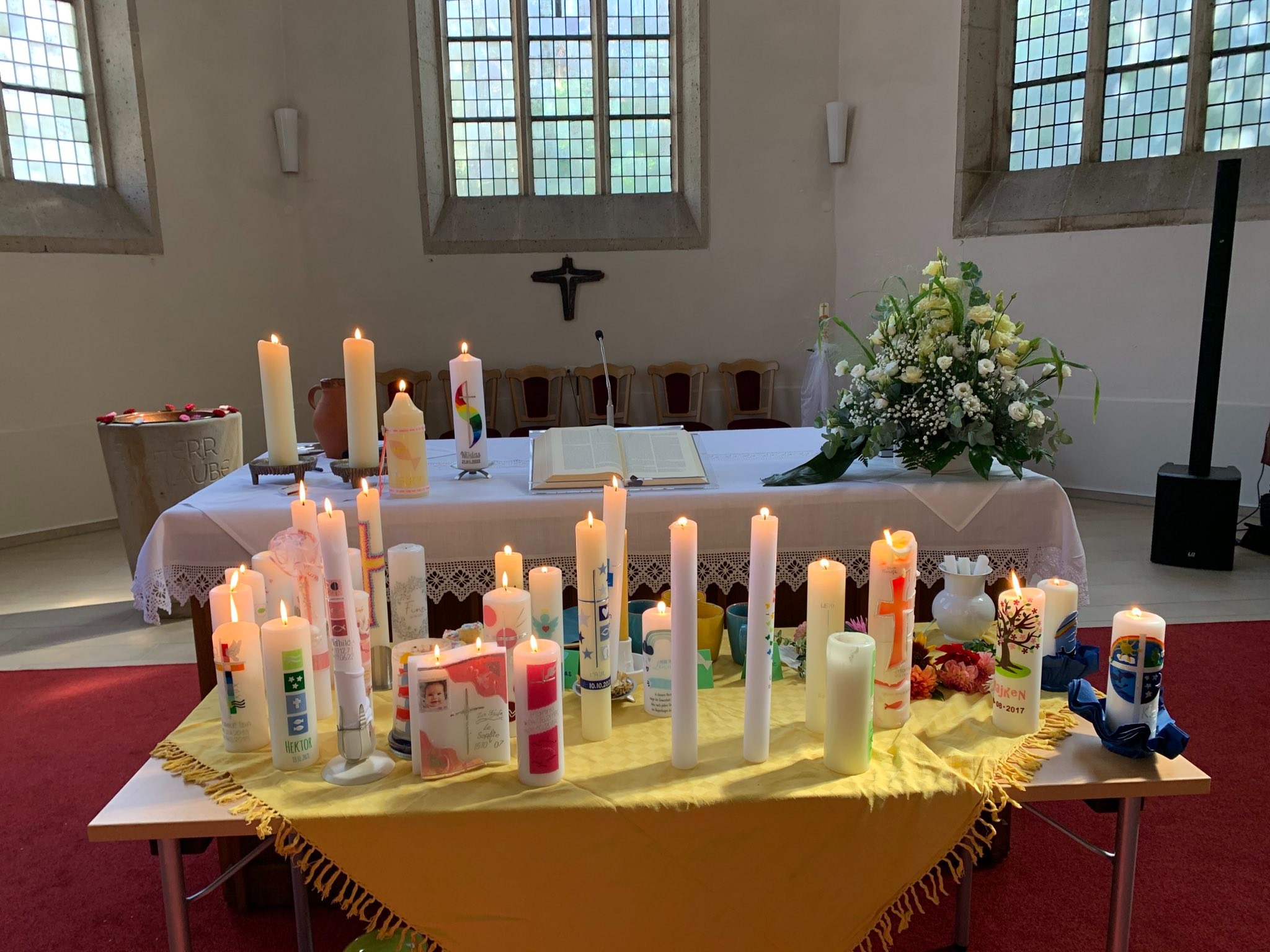 Mehrmals im Jahr bieten wir an unterschiedlichen Orten Tauffeste an. Hier werden mehrere Kinder gleichzeitig an verschiedenen Taufstationen getauft. Der ganze Gottesdienst richtet sich dem Thema Taufe aus und es sind natürlich besonders viele Kinder und Familien anwesend. Auch die Orte sind unterschiedlich. Im Frühling auf der Wiese neben dem Gemeindehaus und im Spätsommer an der Hollicher Mühle. Alle Gottesdienste sind bunt und lebendig - so wie das Leben mit Kindern eben auch. Im Anschluss an den Gottesdienst findet auch ein kleiner Umtrunk statt, zu dem dann alle Tauffamilien eingeladen sind. Melden sie sich frühzeitig, wenn diese Form etwas für sie ist. Wir freuen uns auf Sie.